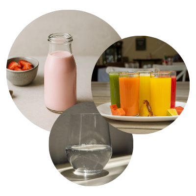 Batidos, zumo, agua
